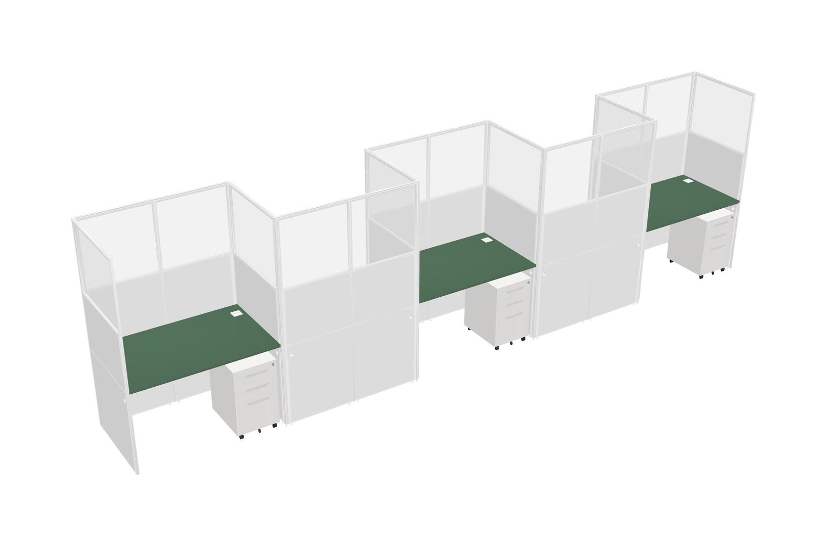 Green Rectangular Cubicle Workstations For 5 - Zigzag Formation + White Metal Mobile Drawers