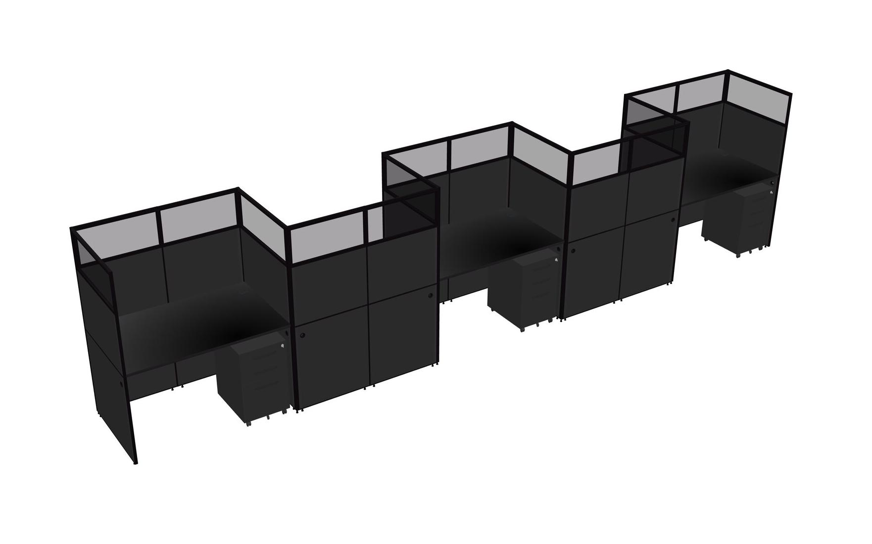 Black Rectangular Cubicle Workstations For 5 - Zigzag Formation + Black Metal Mobile Drawers