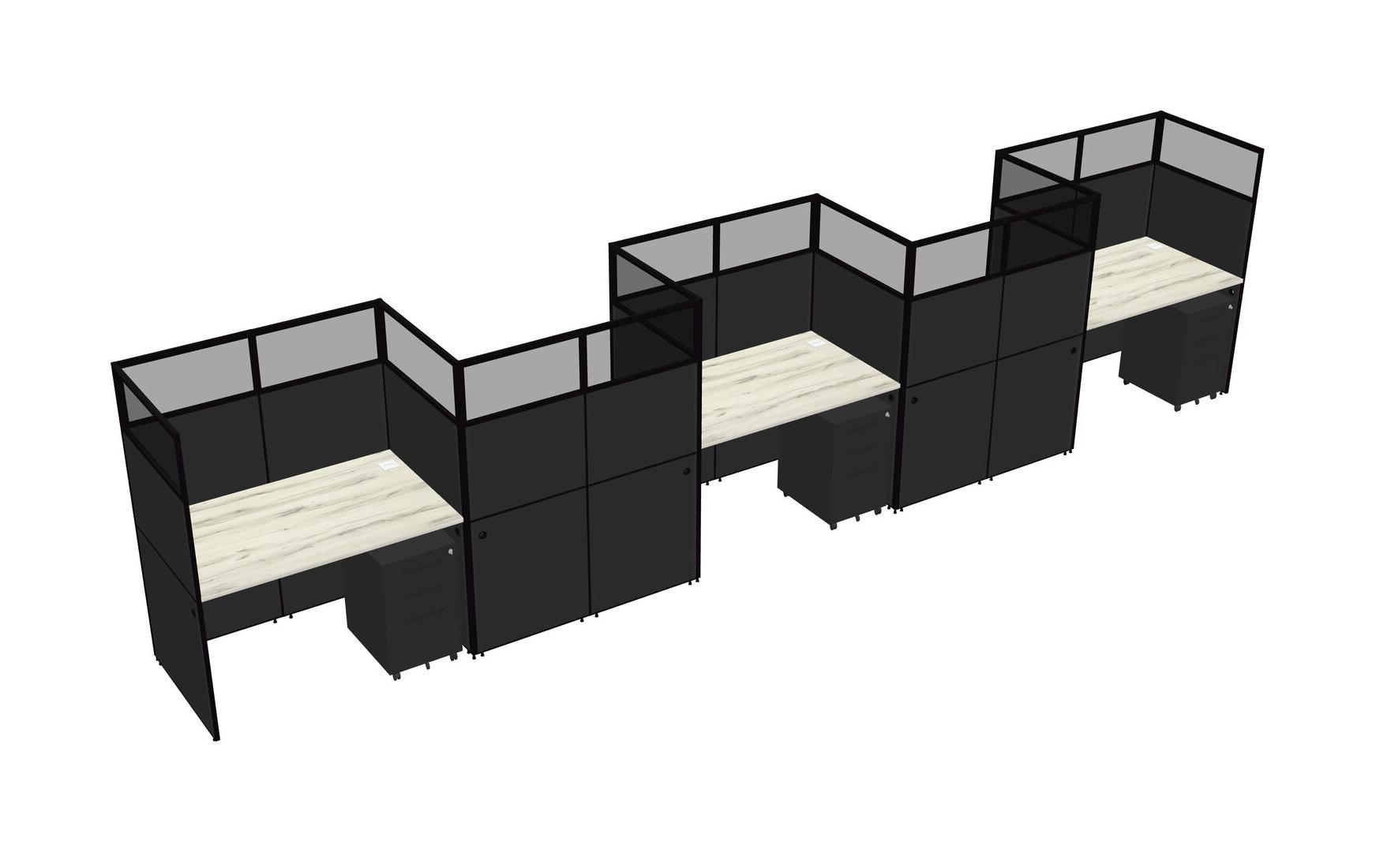 Heinne Holz Rectangular Cubicle Workstations For 5 - Zigzag Formation + Black Metal Mobile Drawers