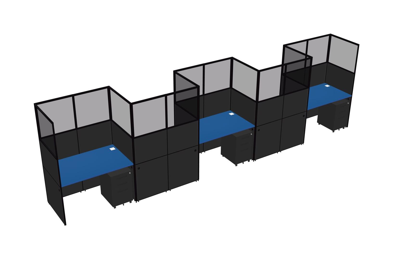 Prism Blue Rectangular Cubicle Workstations For 5 - Zigzag Formation + Black Metal Mobile Drawers