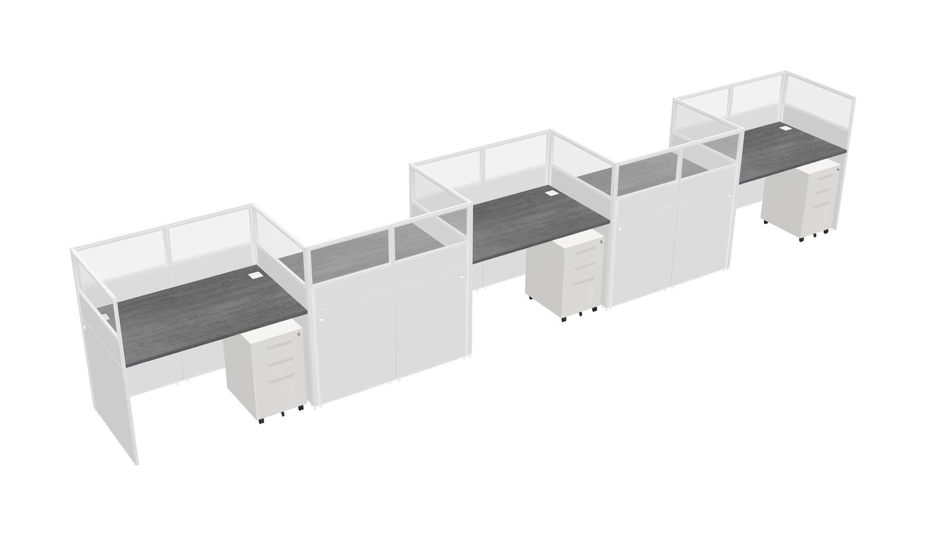 Grey Rectangular Cubicle Workstations For 5 - Zigzag Formation + White Metal Mobile Drawers