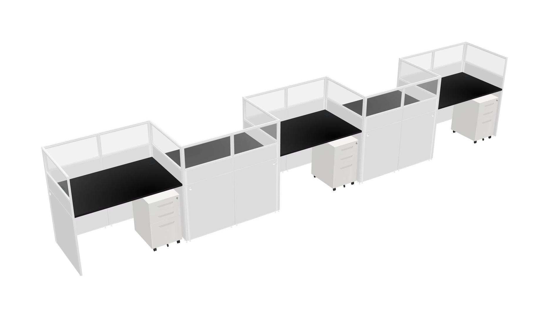 Black Rectangular Cubicle Workstations For 5 - Zigzag Formation + White Metal Mobile Drawers