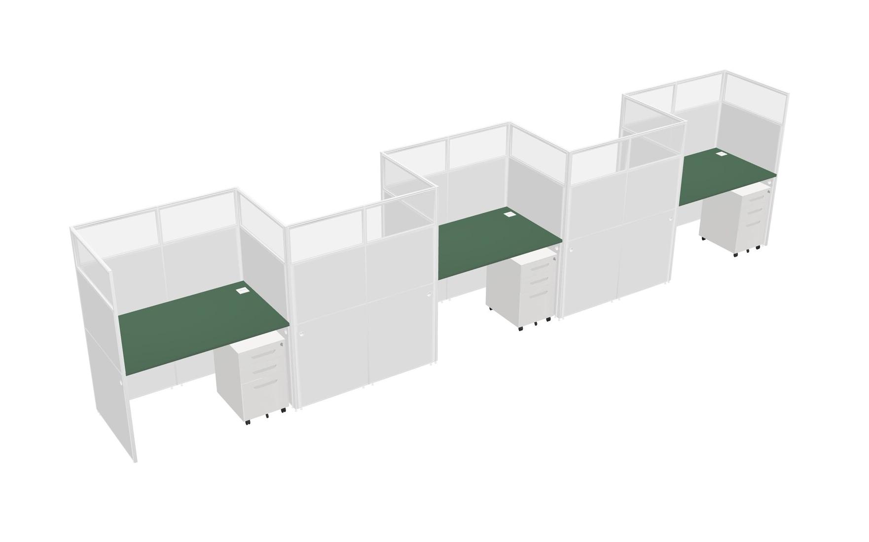 Green Rectangular Cubicle Workstations For 5 - Zigzag Formation + White Metal Mobile Drawers
