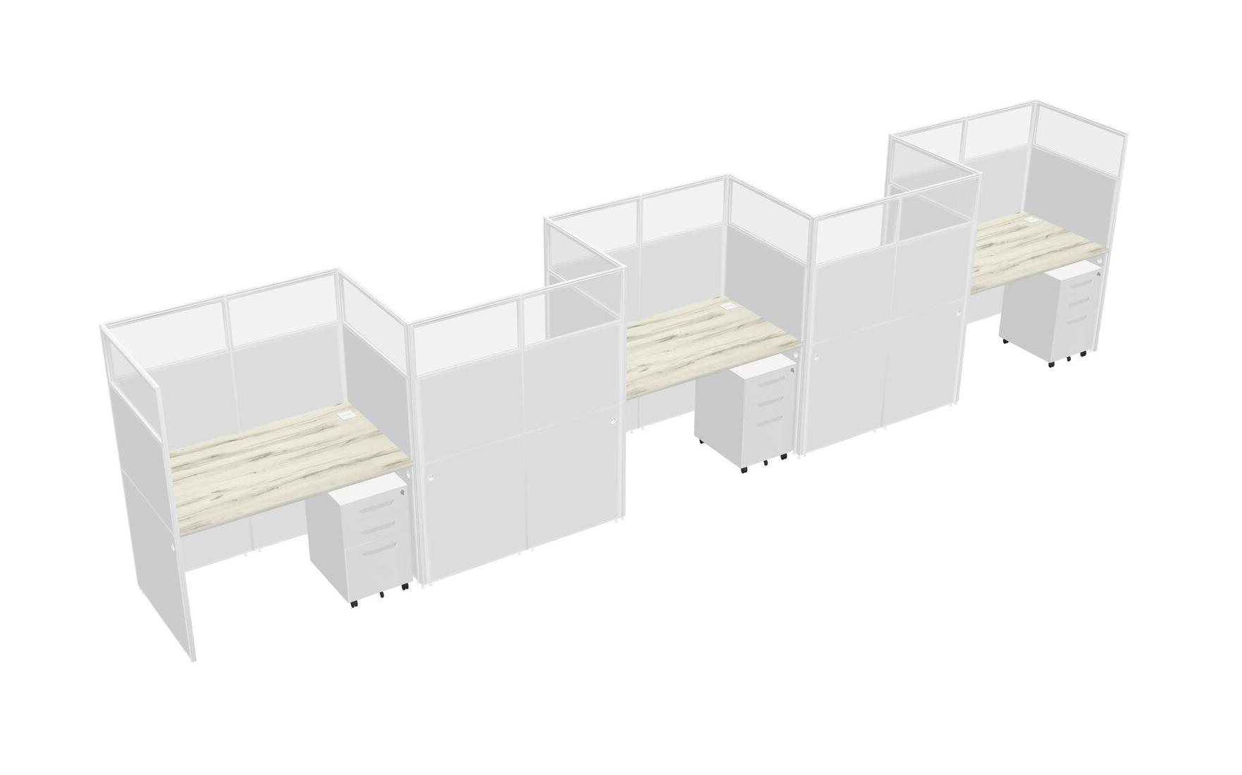 Heinne Holz Rectangular Cubicle Workstations For 5 - Zigzag Formation + White Metal Mobile Drawers