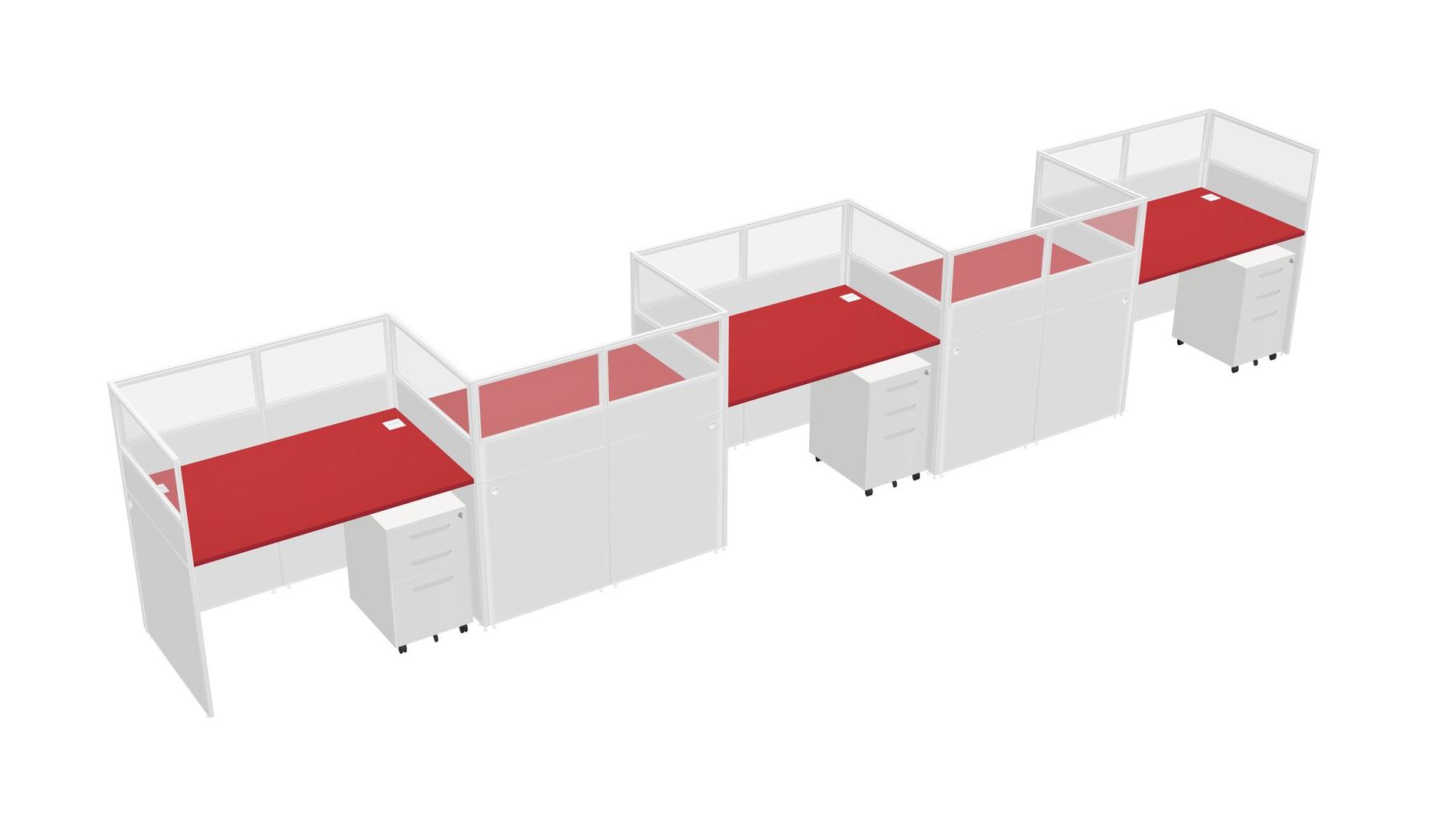 Prism Red Rectangular Cubicle Workstations For 5 - Zigzag Formation + White Metal Mobile Drawers