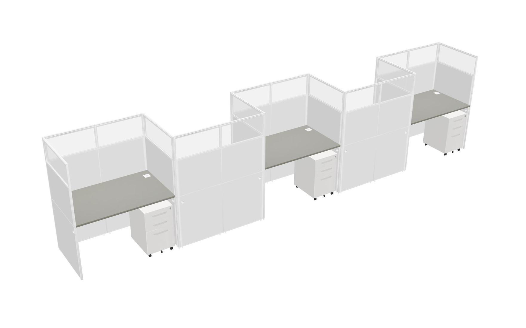Grey Shadows Rectangular Cubicle Workstations For 5 - Zigzag Formation + White Metal Mobile Drawers