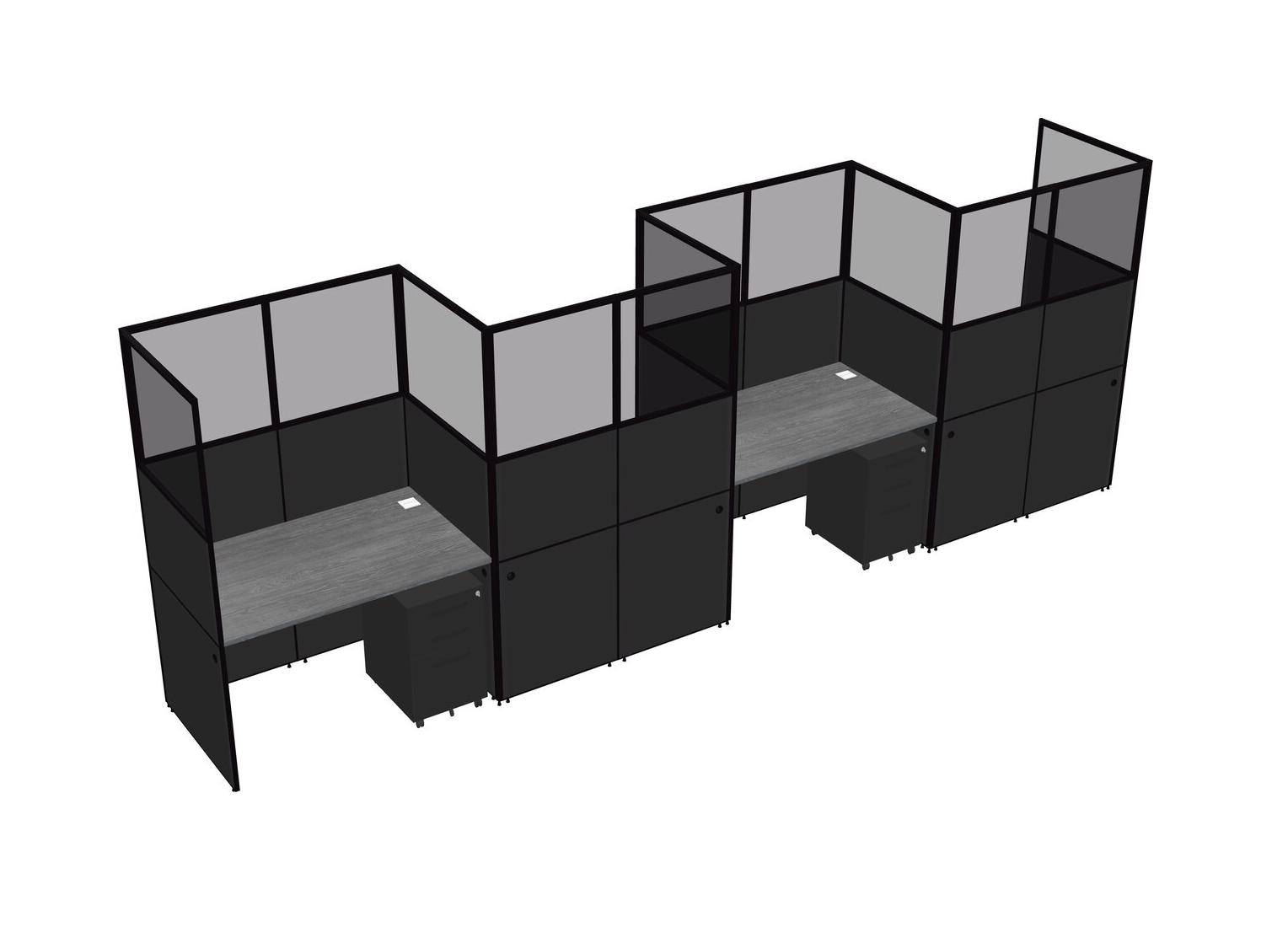 Grey Rectangular Cubicle Workstations For 4 - Zigzag Formation + Black Metal Mobile Drawers