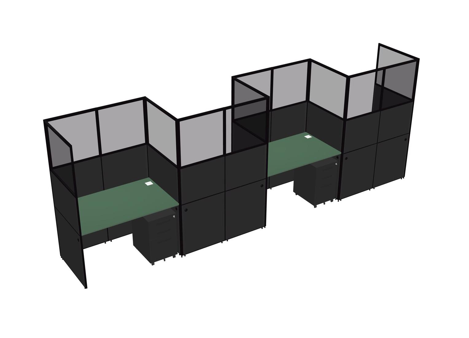 Green Rectangular Cubicle Workstations For 4 - Zigzag Formation + Black Metal Mobile Drawers