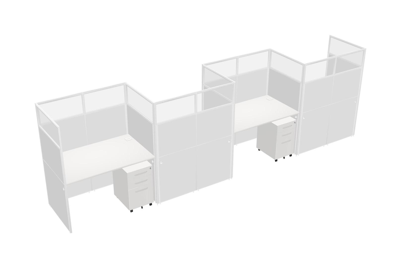 White Rectangular Cubicle Workstations For 4 - Zigzag Formation + White Metal Mobile Drawers