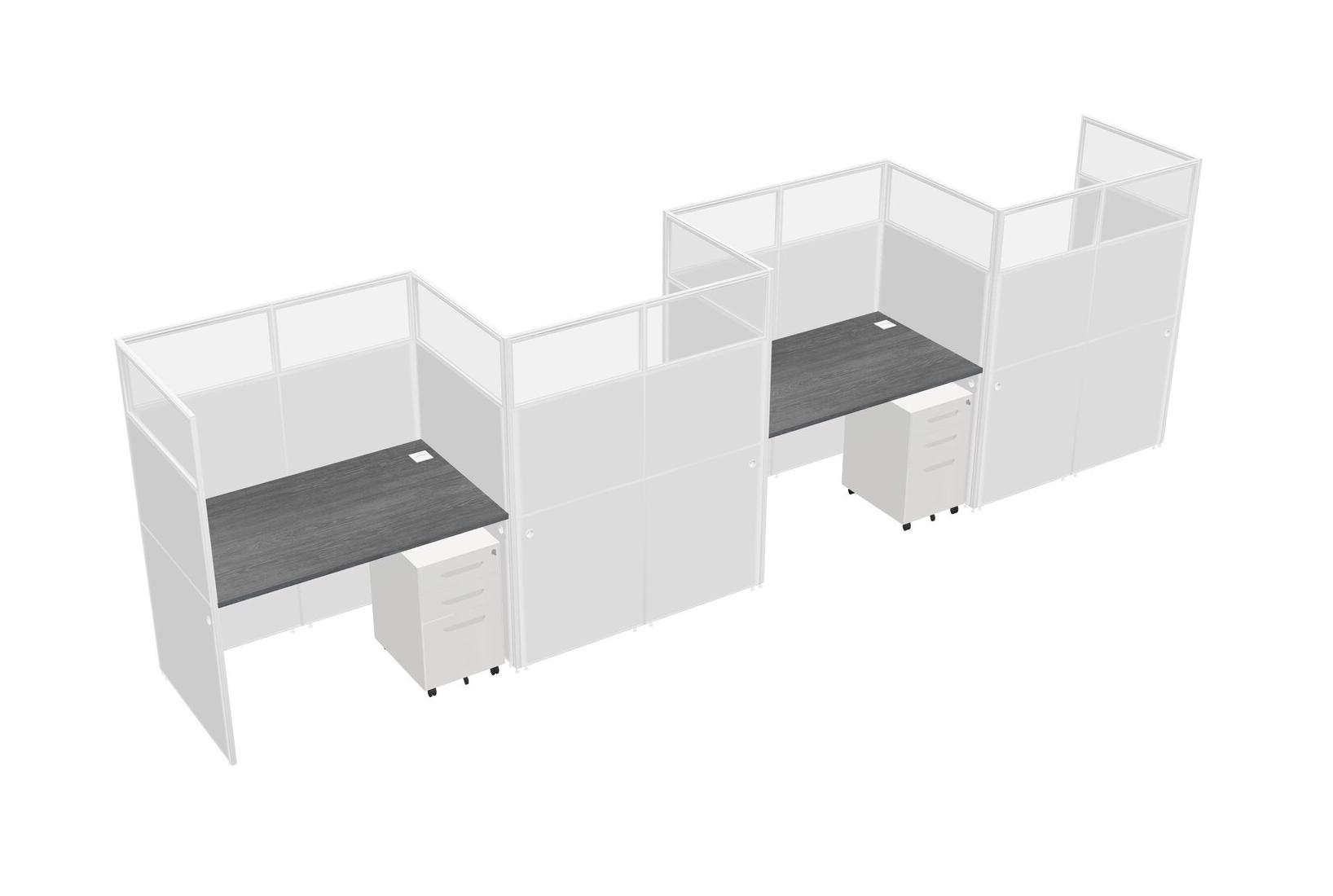 Grey Rectangular Cubicle Workstations For 4 - Zigzag Formation + White Metal Mobile Drawers