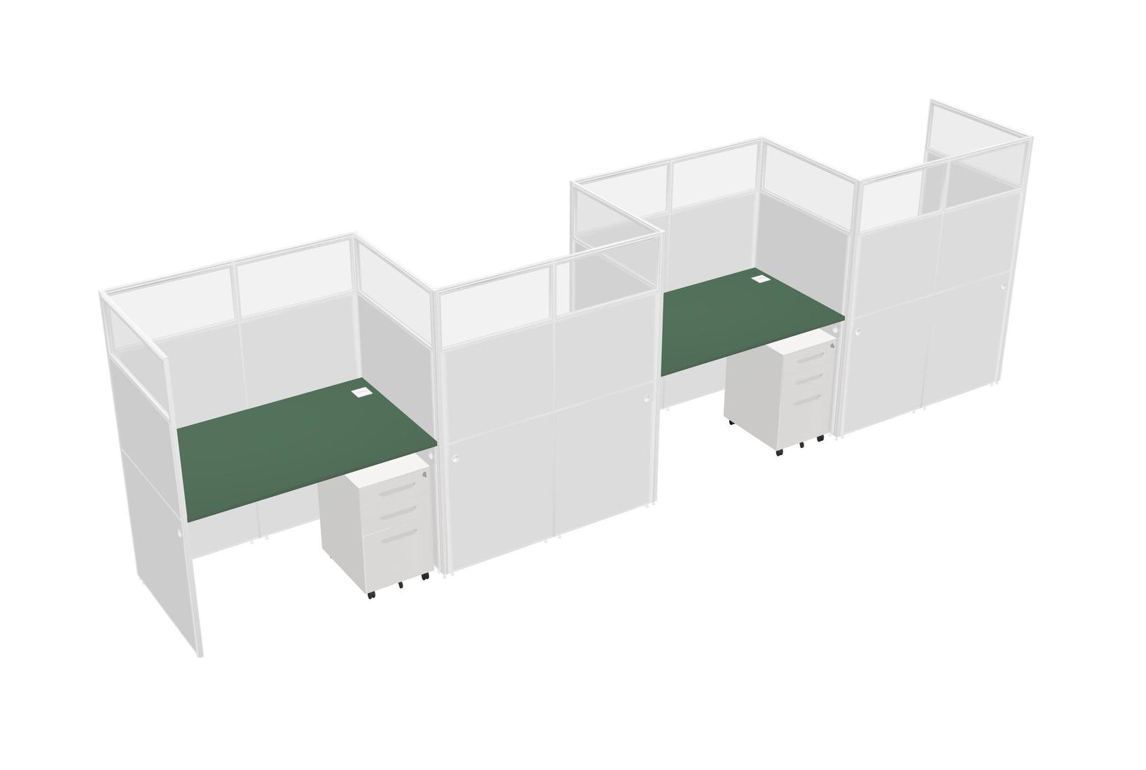 Green Rectangular Cubicle Workstations For 4 - Zigzag Formation + White Metal Mobile Drawers