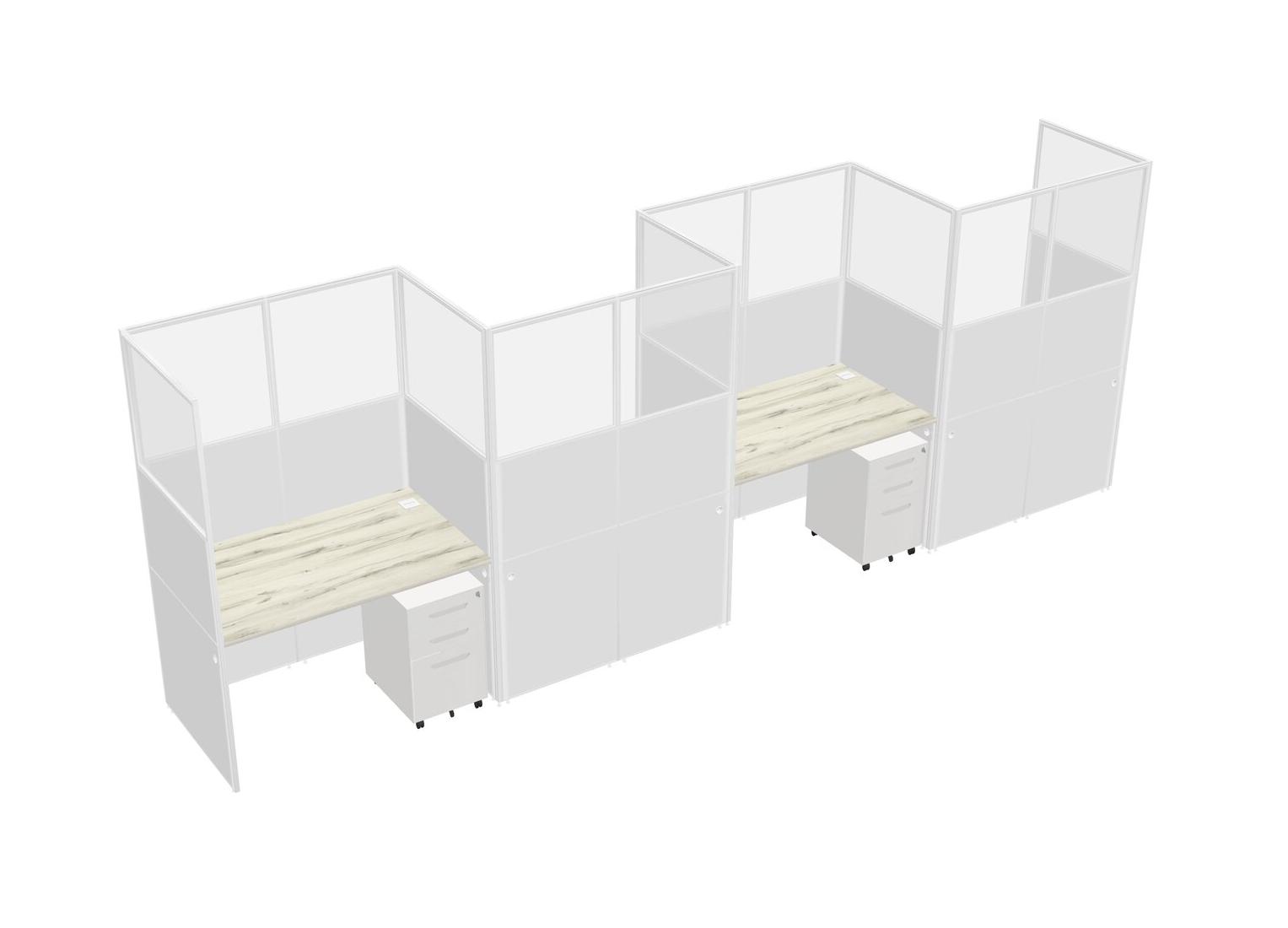 Heinne Holz Rectangular Cubicle Workstations For 4 - Zigzag Formation + White Metal Mobile Drawers