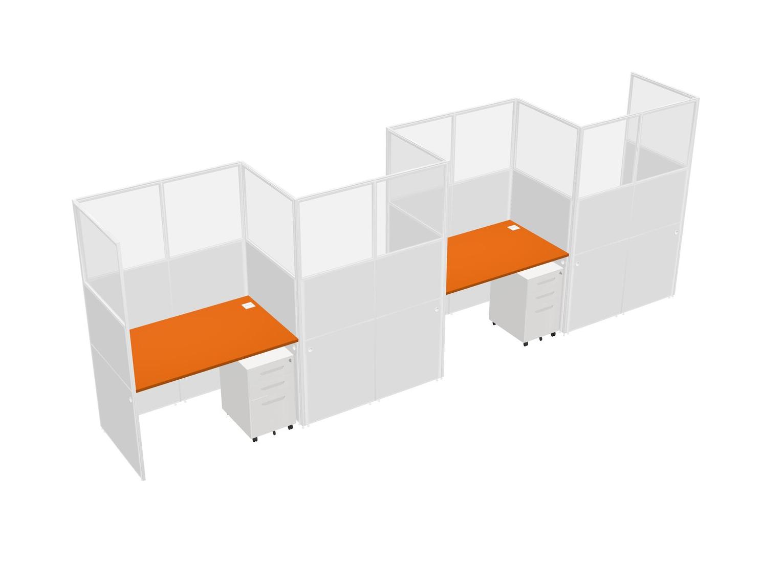Orange Rectangular Cubicle Workstations For 4 - Zigzag Formation + White Metal Mobile Drawers