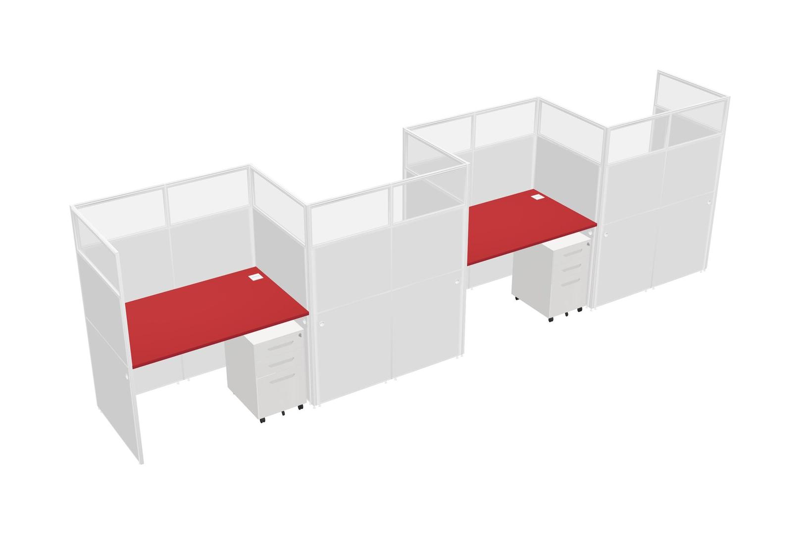Prism Red Rectangular Cubicle Workstations For 4 - Zigzag Formation + White Metal Mobile Drawers