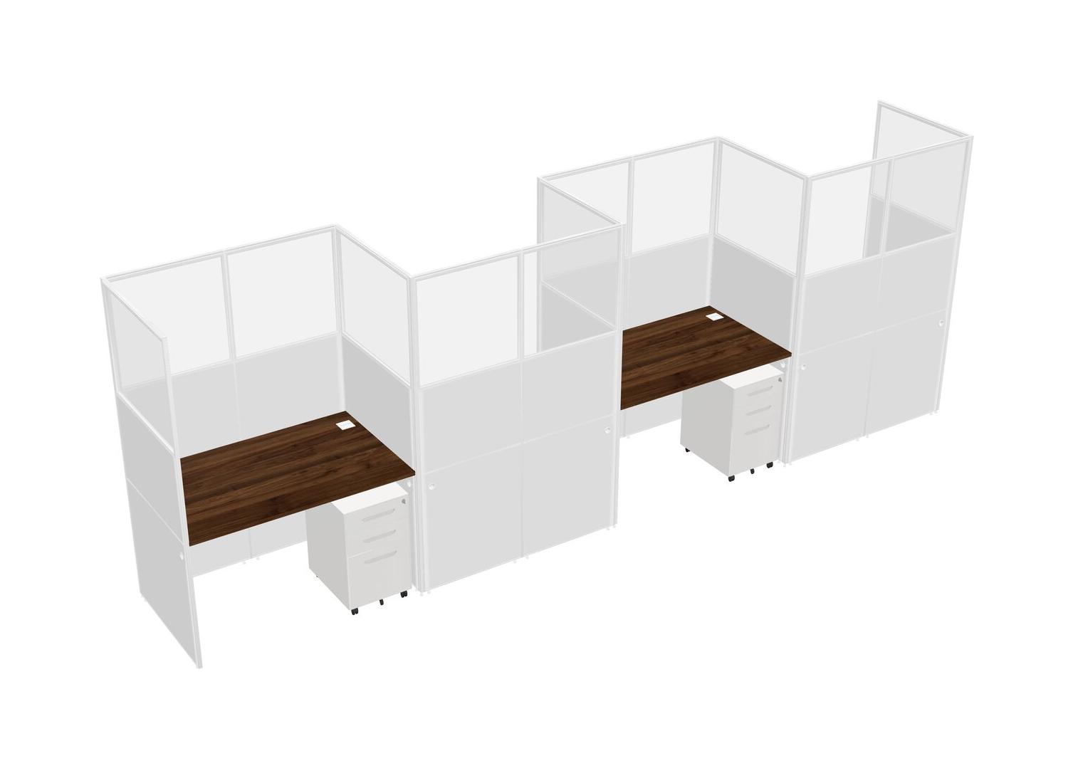Columbia Walnut Rectangular Cubicle Workstations For 4 - Zigzag Formation + White Metal Mobile Drawers
