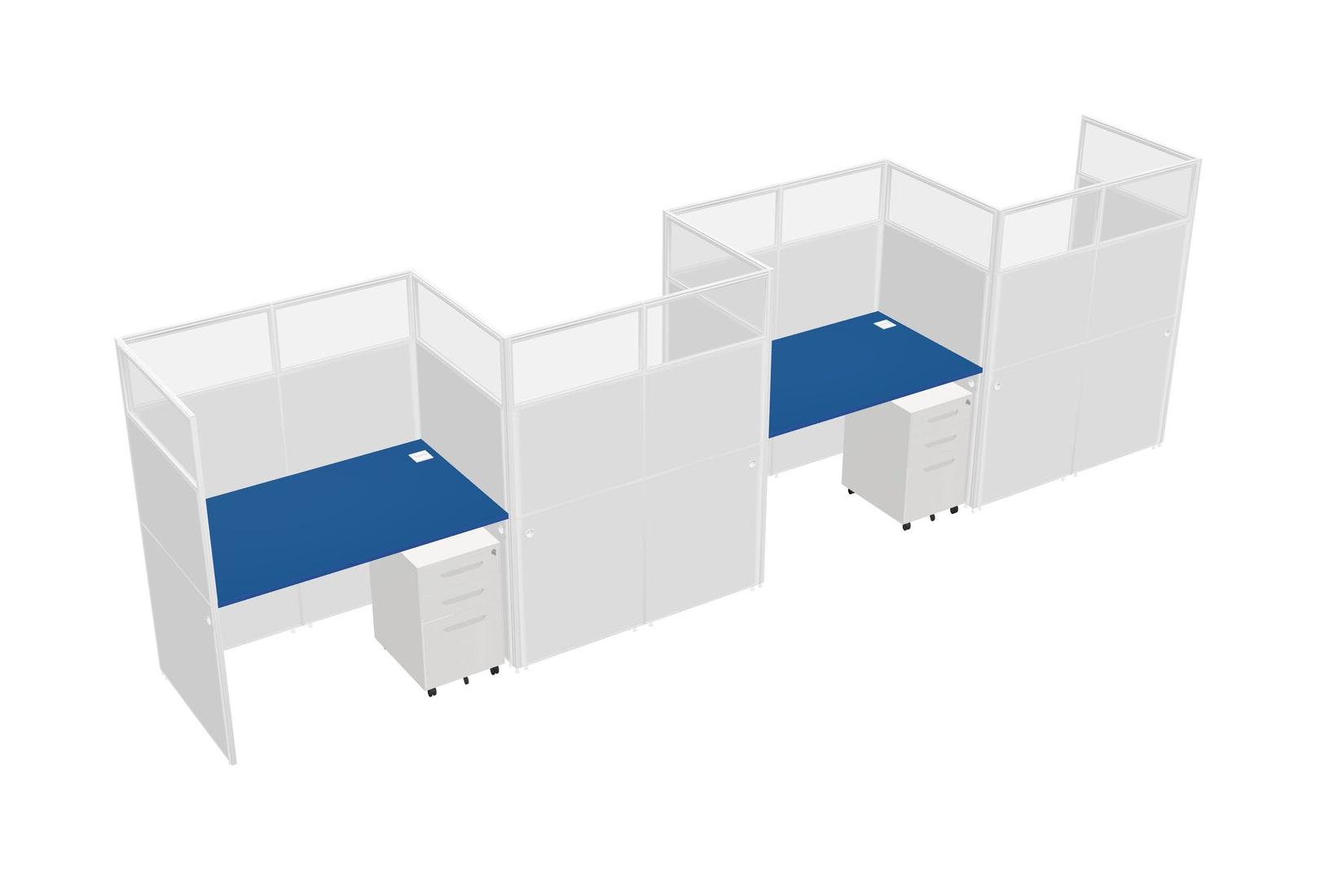 Prism Blue Rectangular Cubicle Workstations For 4 - Zigzag Formation + White Metal Mobile Drawers