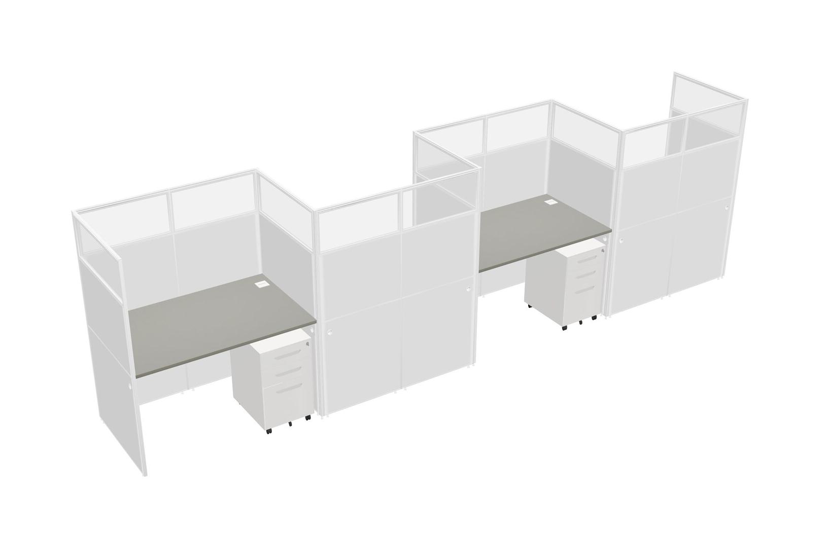 Grey Shadows Rectangular Cubicle Workstations For 4 - Zigzag Formation + White Metal Mobile Drawers