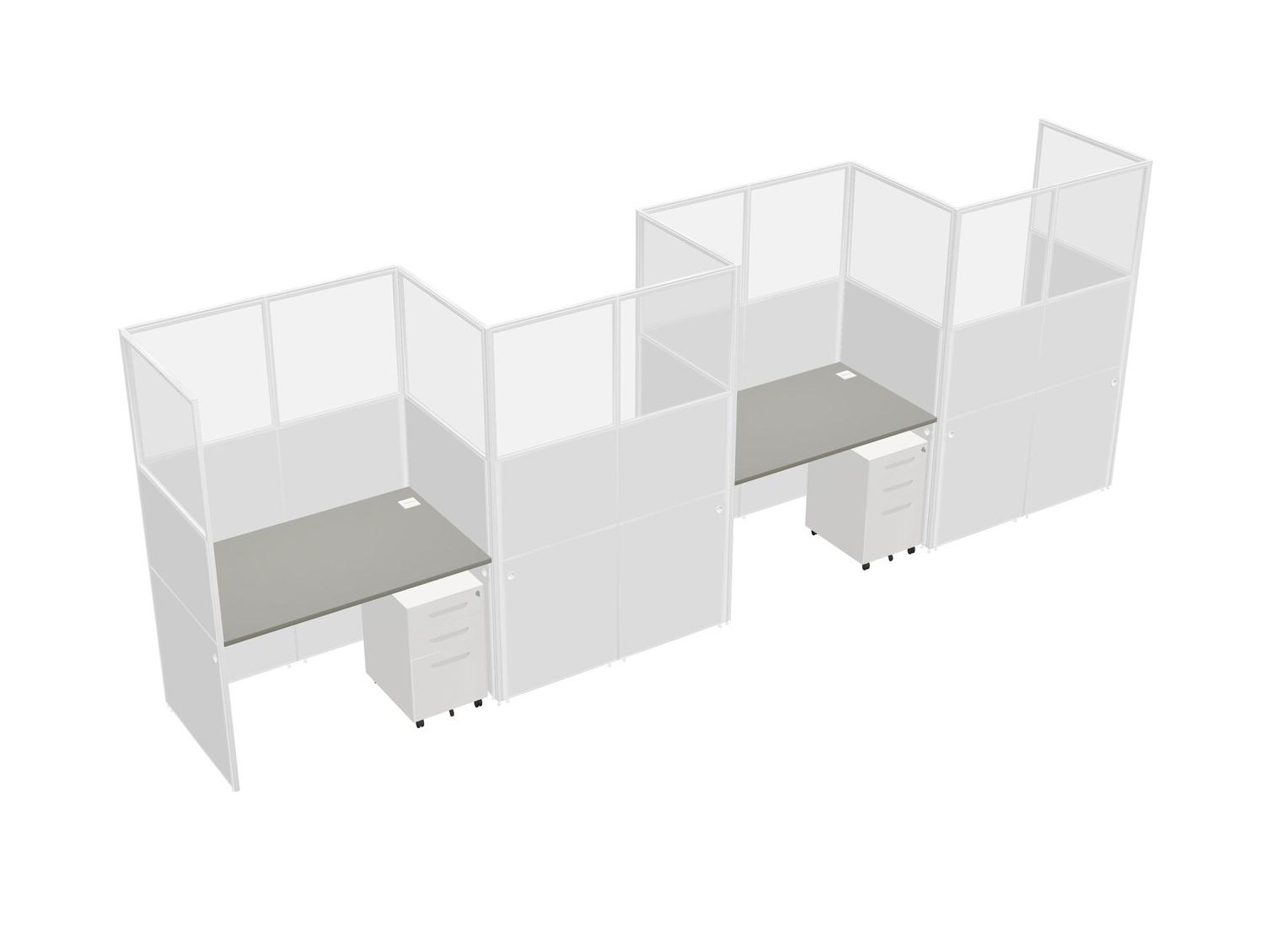 Grey Shadows Rectangular Cubicle Workstations For 4 - Zigzag Formation + White Metal Mobile Drawers