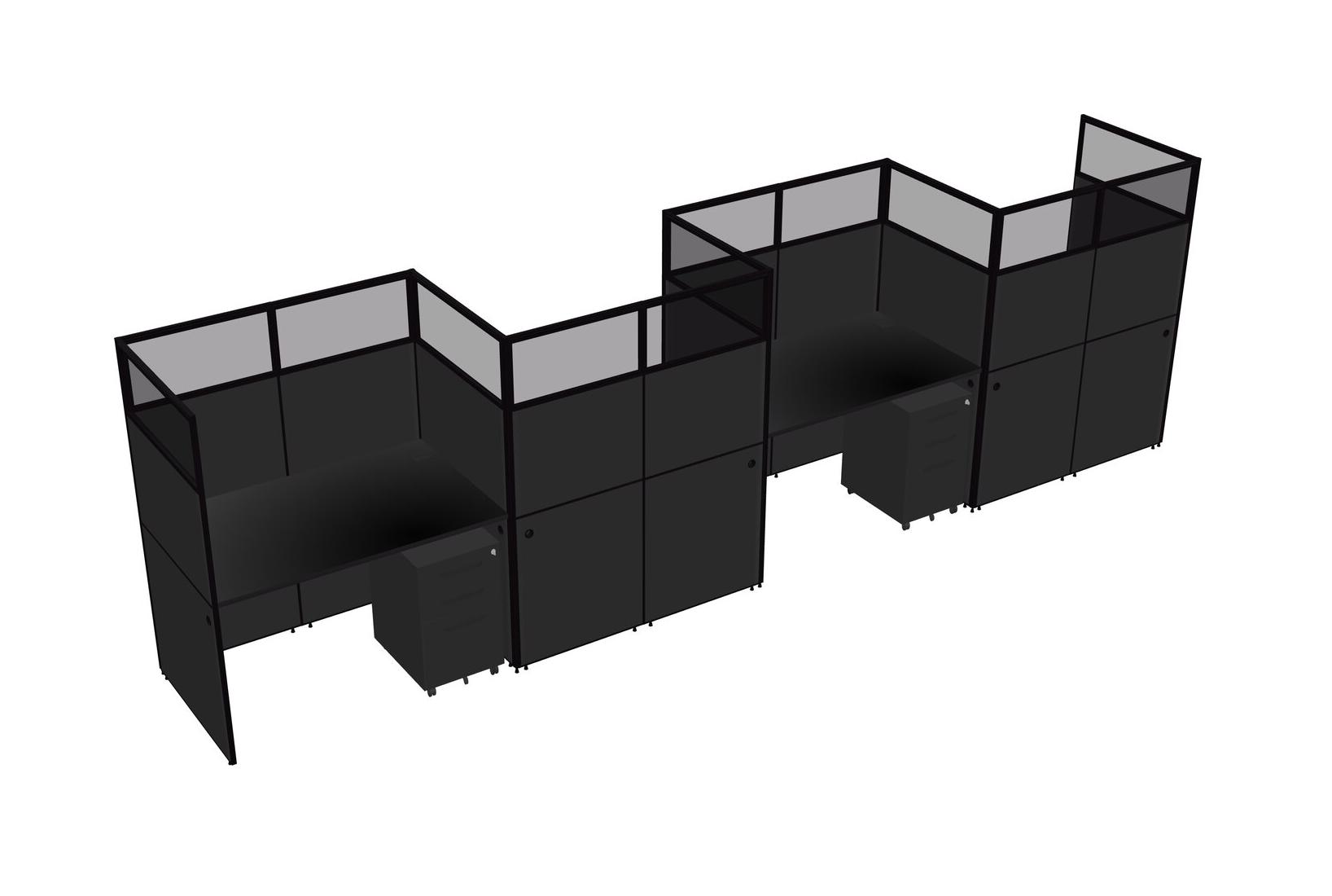 Black Rectangular Cubicle Workstations For 4 - Zigzag Formation + Black Metal Mobile Drawers