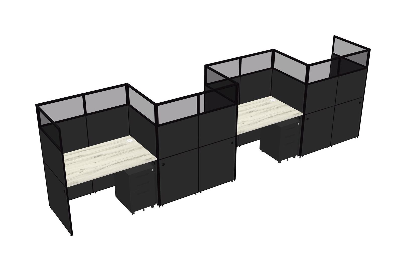 Heinne Holz Rectangular Cubicle Workstations For 4 - Zigzag Formation + Black Metal Mobile Drawers