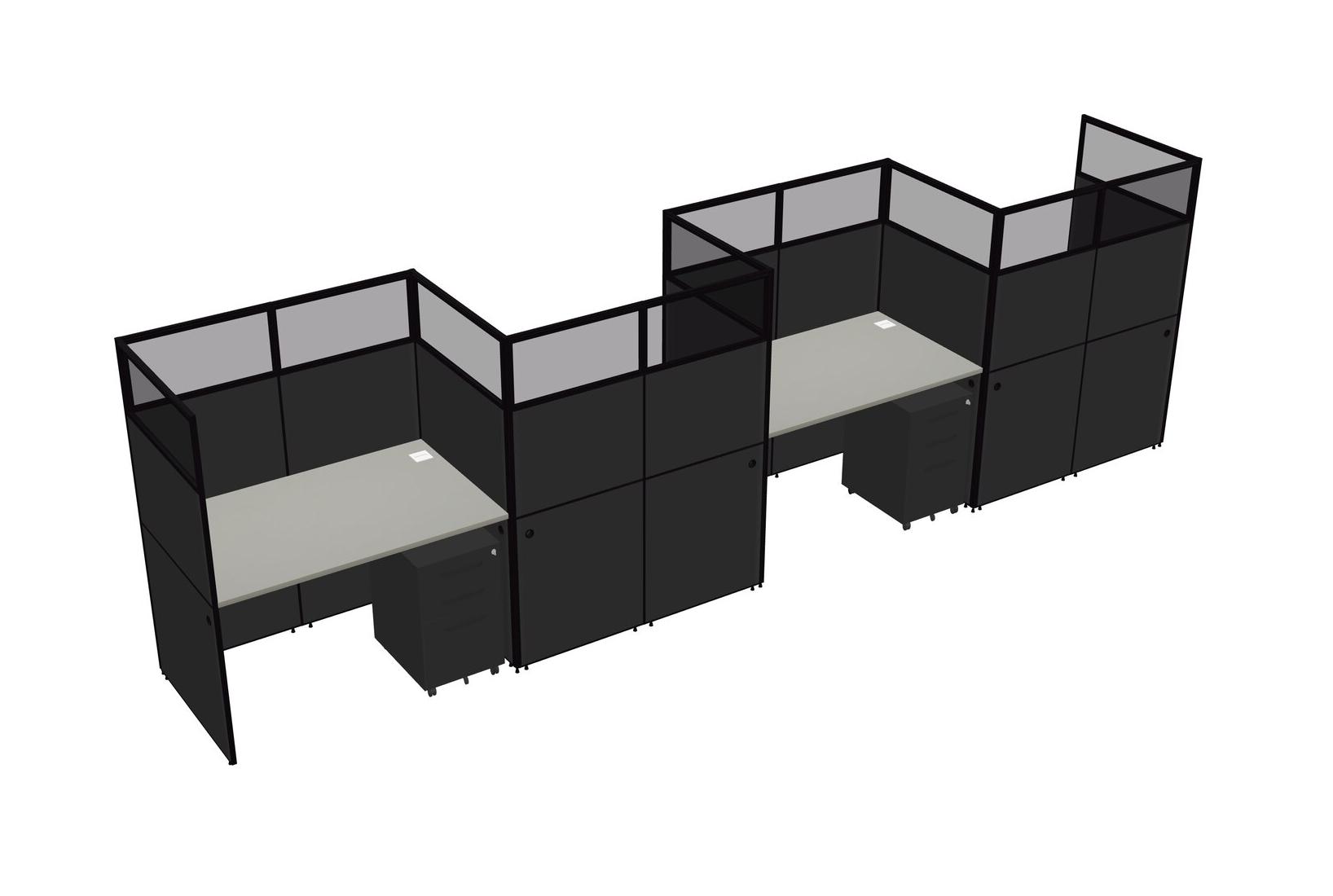 Grey Shadows Rectangular Cubicle Workstations For 4 - Zigzag Formation + Black Metal Mobile Drawers