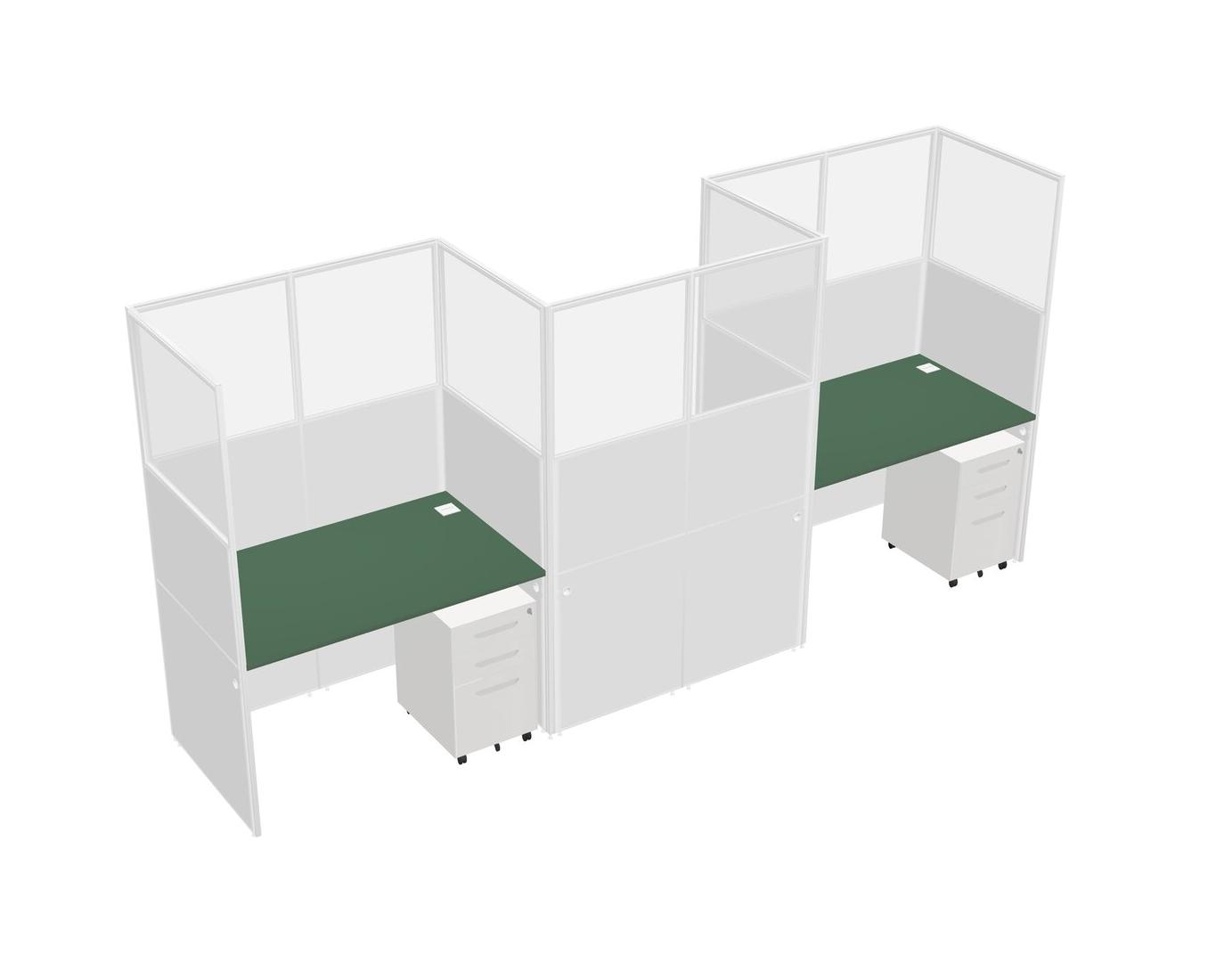 Green Rectangular Cubicle Workstations For 3 - Zigzag Formation + White Metal Mobile Drawers