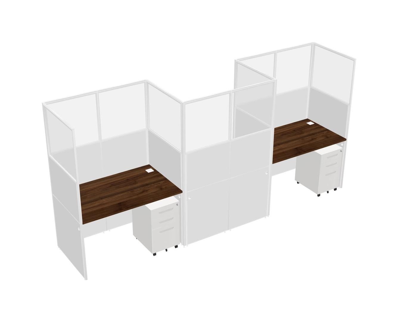 Columbia Walnut Rectangular Cubicle Workstations For 3 - Zigzag Formation + White Metal Mobile Drawers