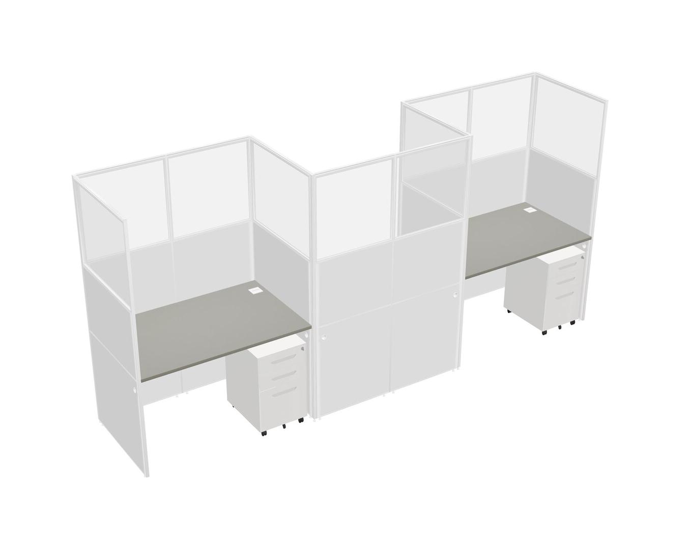 Grey Shadows Rectangular Cubicle Workstations For 3 - Zigzag Formation + White Metal Mobile Drawers