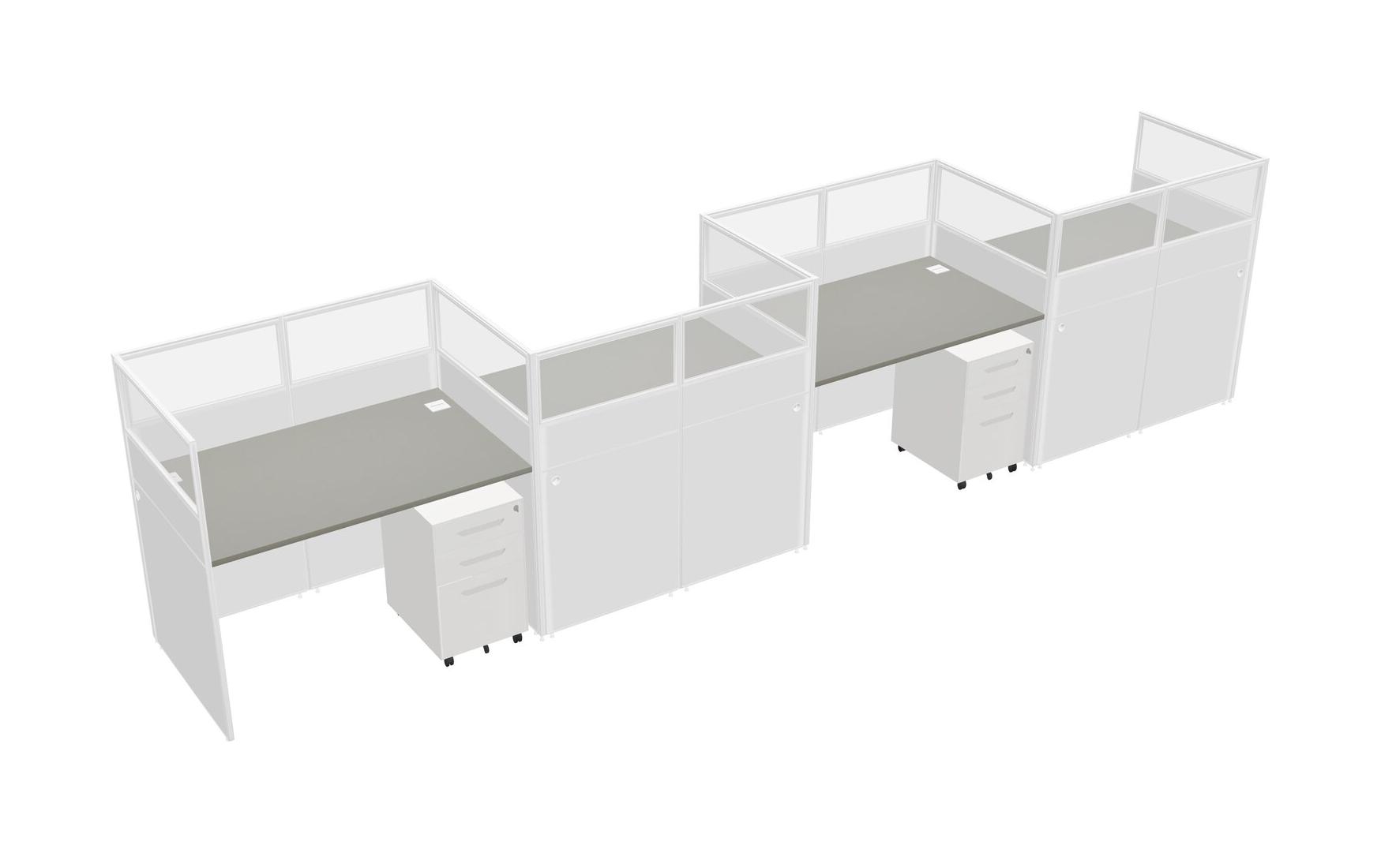 Grey Shadows Rectangular Cubicle Workstations For 4 - Zigzag Formation + White Metal Mobile Drawers