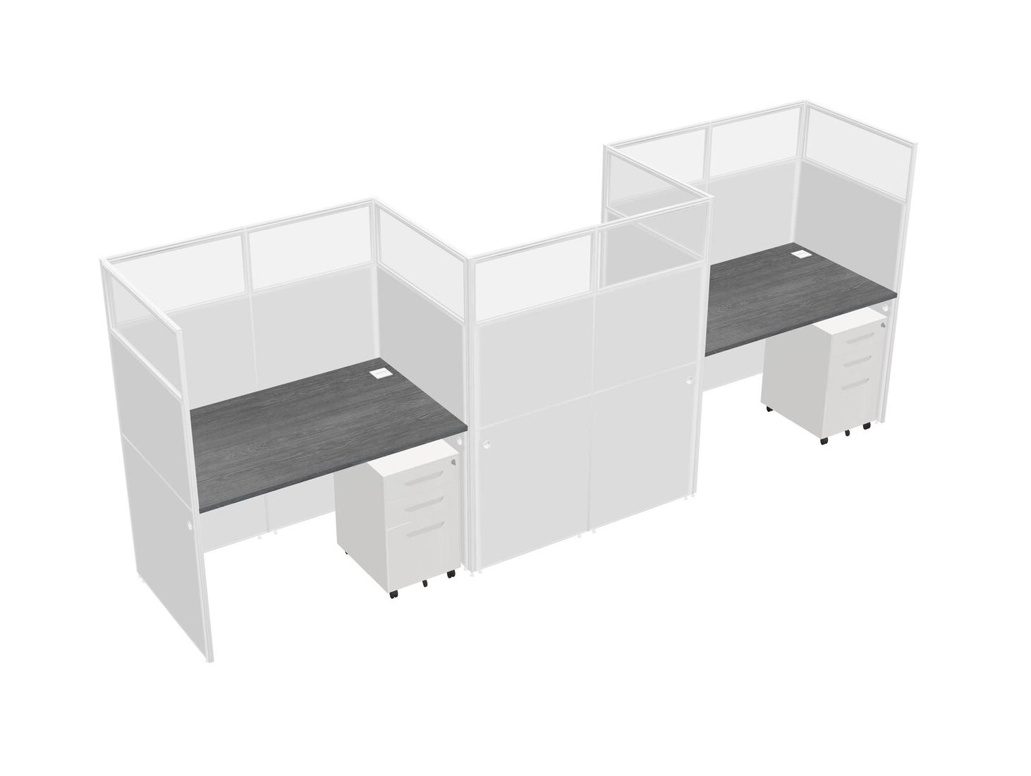Grey Rectangular Cubicle Workstations For 3 - Zigzag Formation + White Metal Mobile Drawers