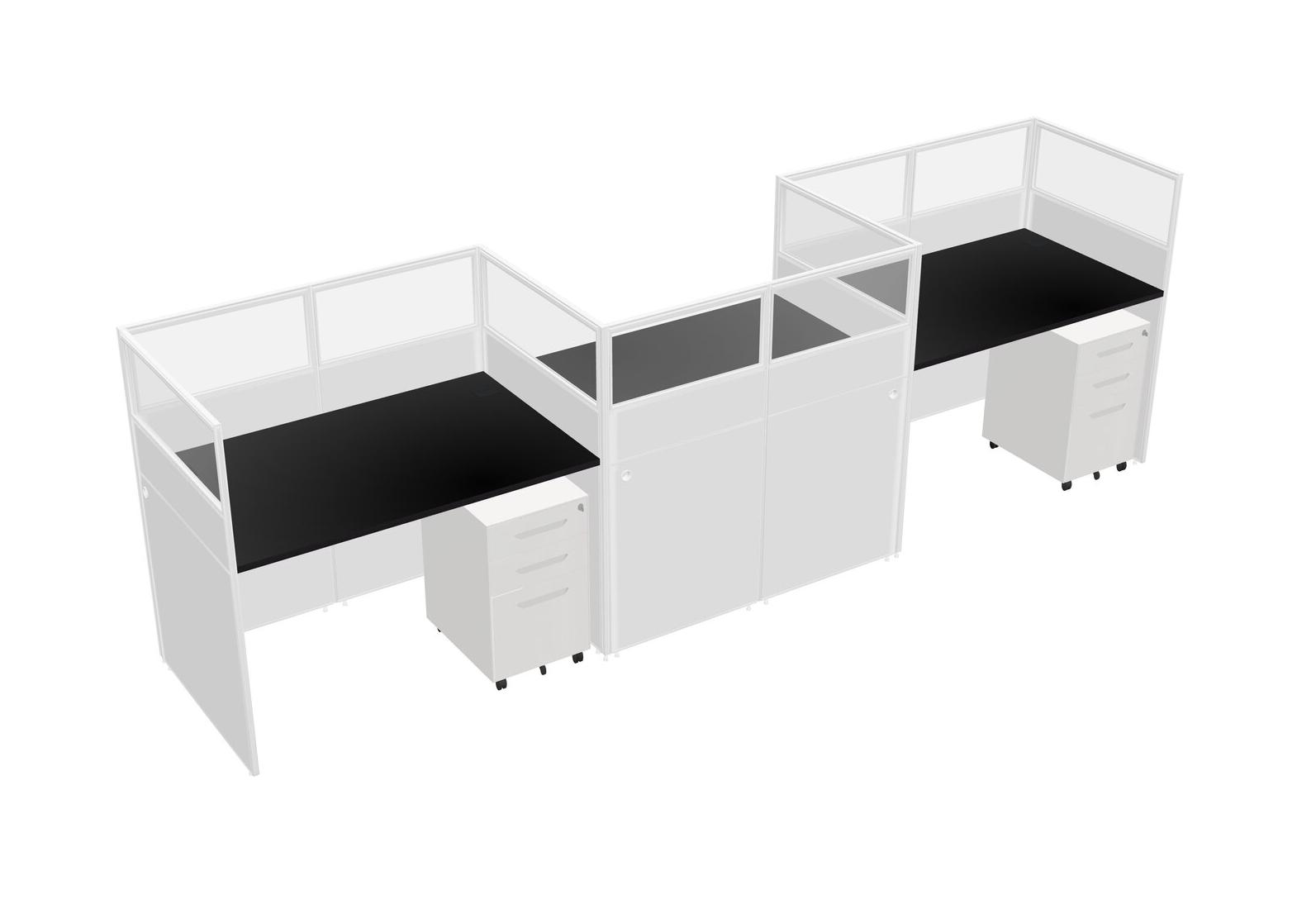 Black Rectangular Cubicle Workstations For 3 - Zigzag Formation + White Metal Mobile Drawers