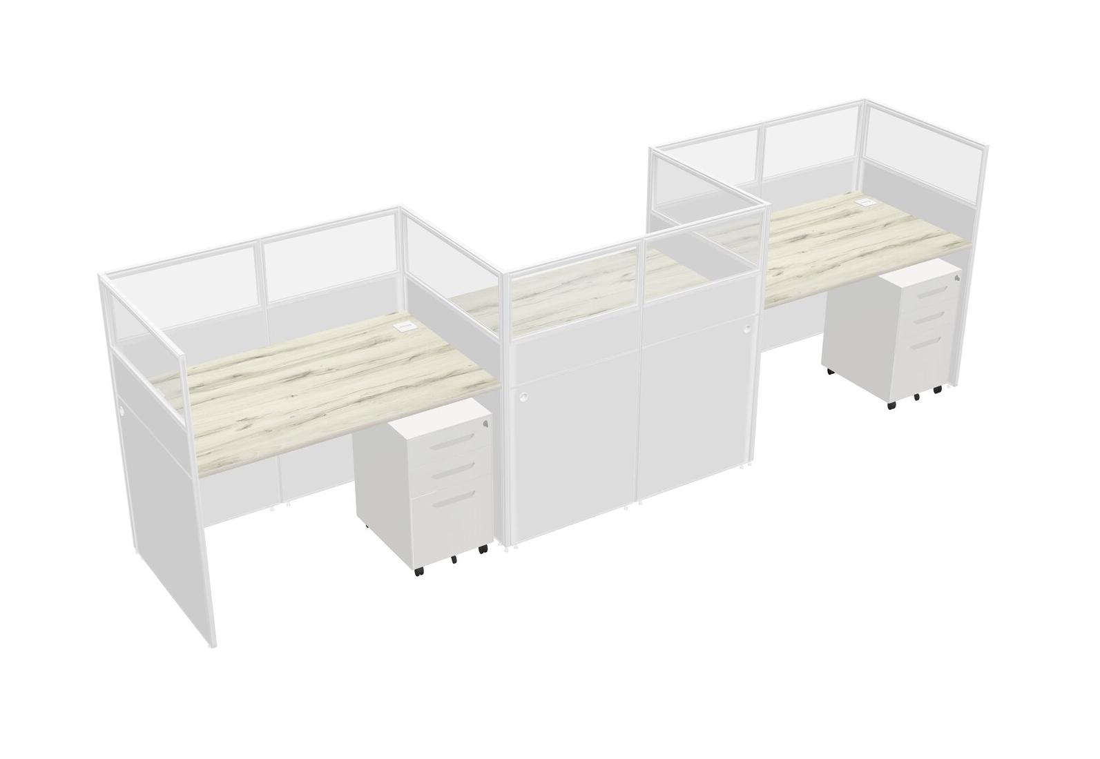 Heinne Holz Rectangular Cubicle Workstations For 3 - Zigzag Formation + White Metal Mobile Drawers