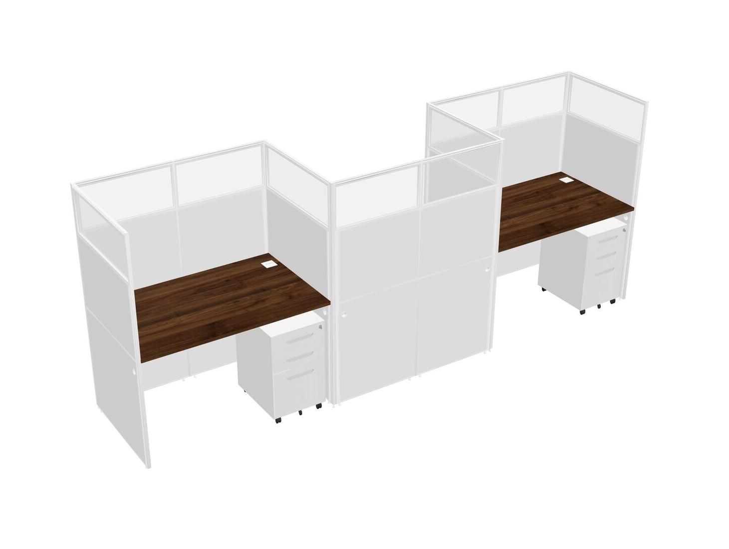 Columbia Walnut Rectangular Cubicle Workstations For 3 - Zigzag Formation + White Metal Mobile Drawers
