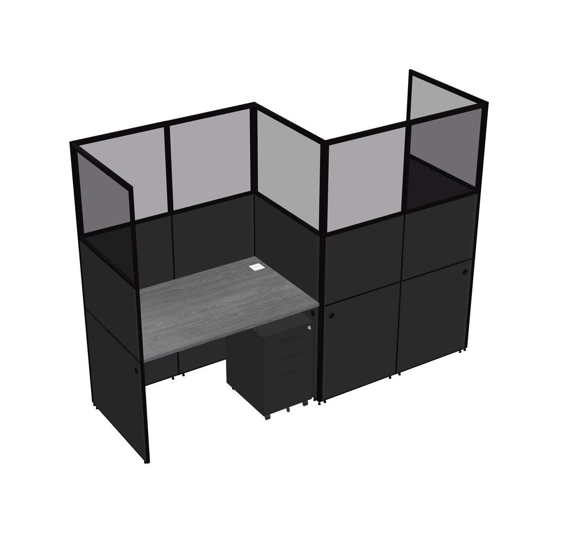 Grey Rectangular Cubicle Workstations For 2 - Zigzag Formation + Black Metal Mobile Drawers