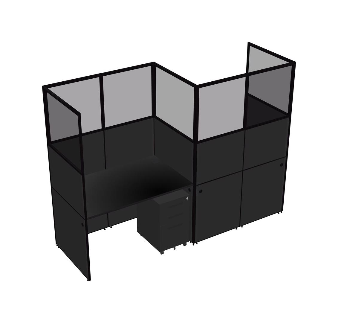 Black Rectangular Cubicle Workstations For 2 - Zigzag Formation + Black Metal Mobile Drawers
