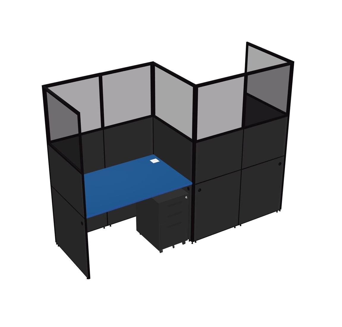 Prism Blue Rectangular Cubicle Workstations For 2 - Zigzag Formation + Black Metal Mobile Drawers