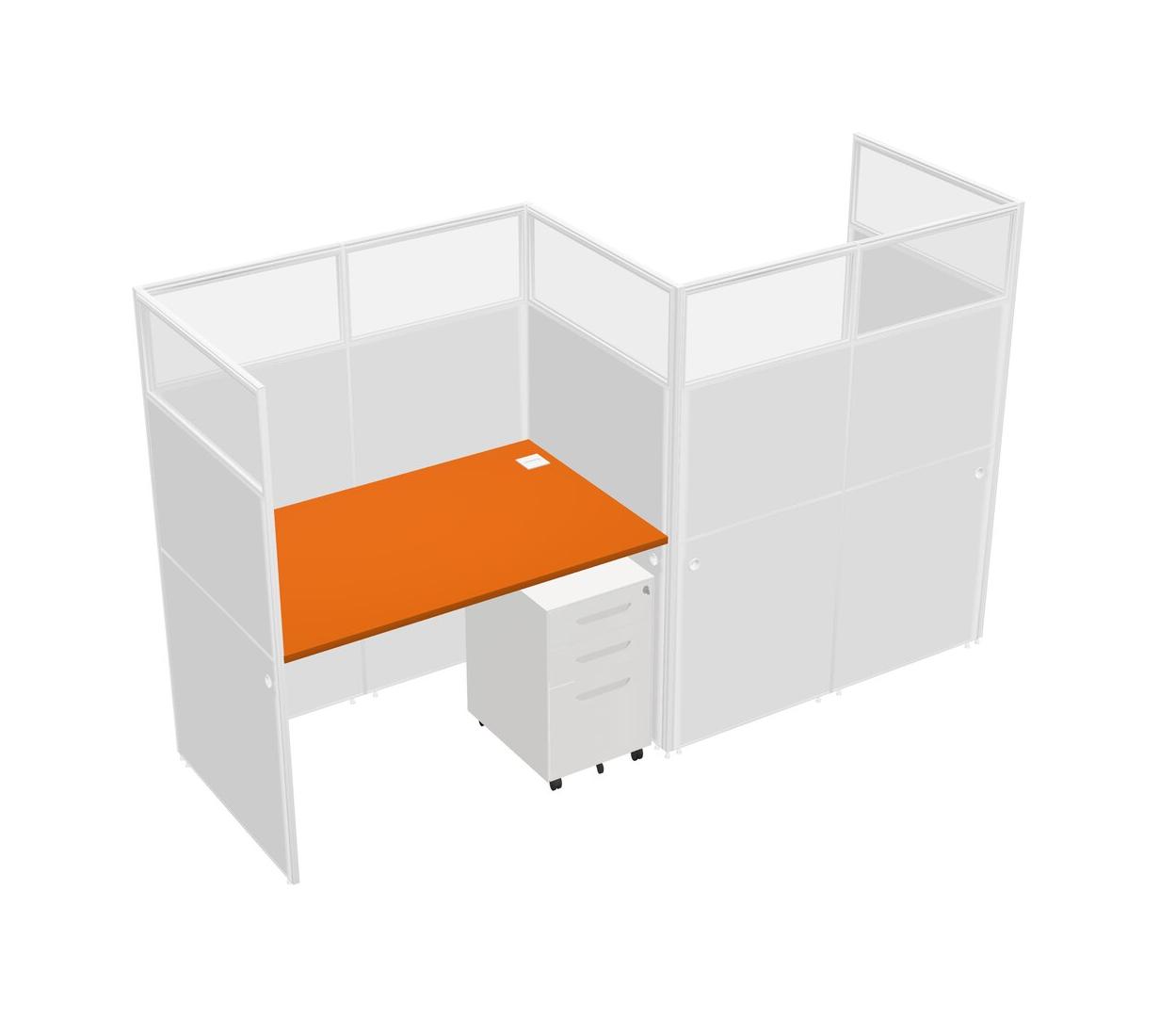 Orange Rectangular Cubicle Workstations For 2 - Zigzag Formation + White Metal Mobile Drawers