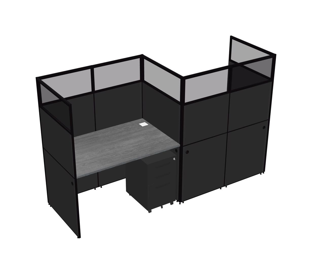 Grey Rectangular Cubicle Workstations For 2 - Zigzag Formation + Black Metal Mobile Drawers