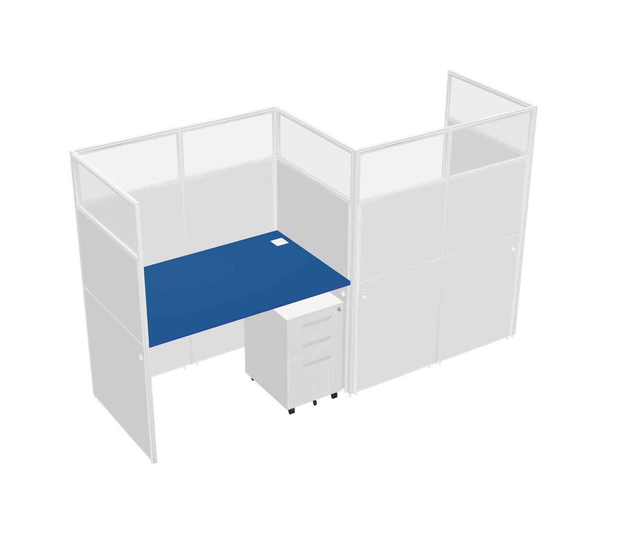 Prism Blue Rectangular Cubicle Workstations For 2 - Zigzag Formation + White Metal Mobile Drawers