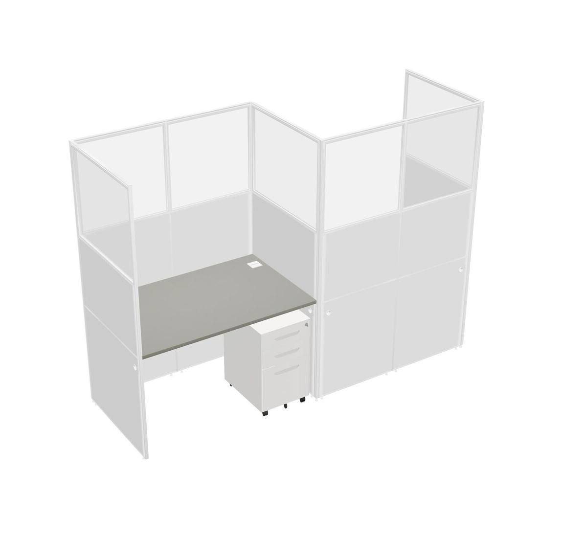 Grey Shadows Rectangular Cubicle Workstations For 2 - Zigzag Formation + White Metal Mobile Drawers