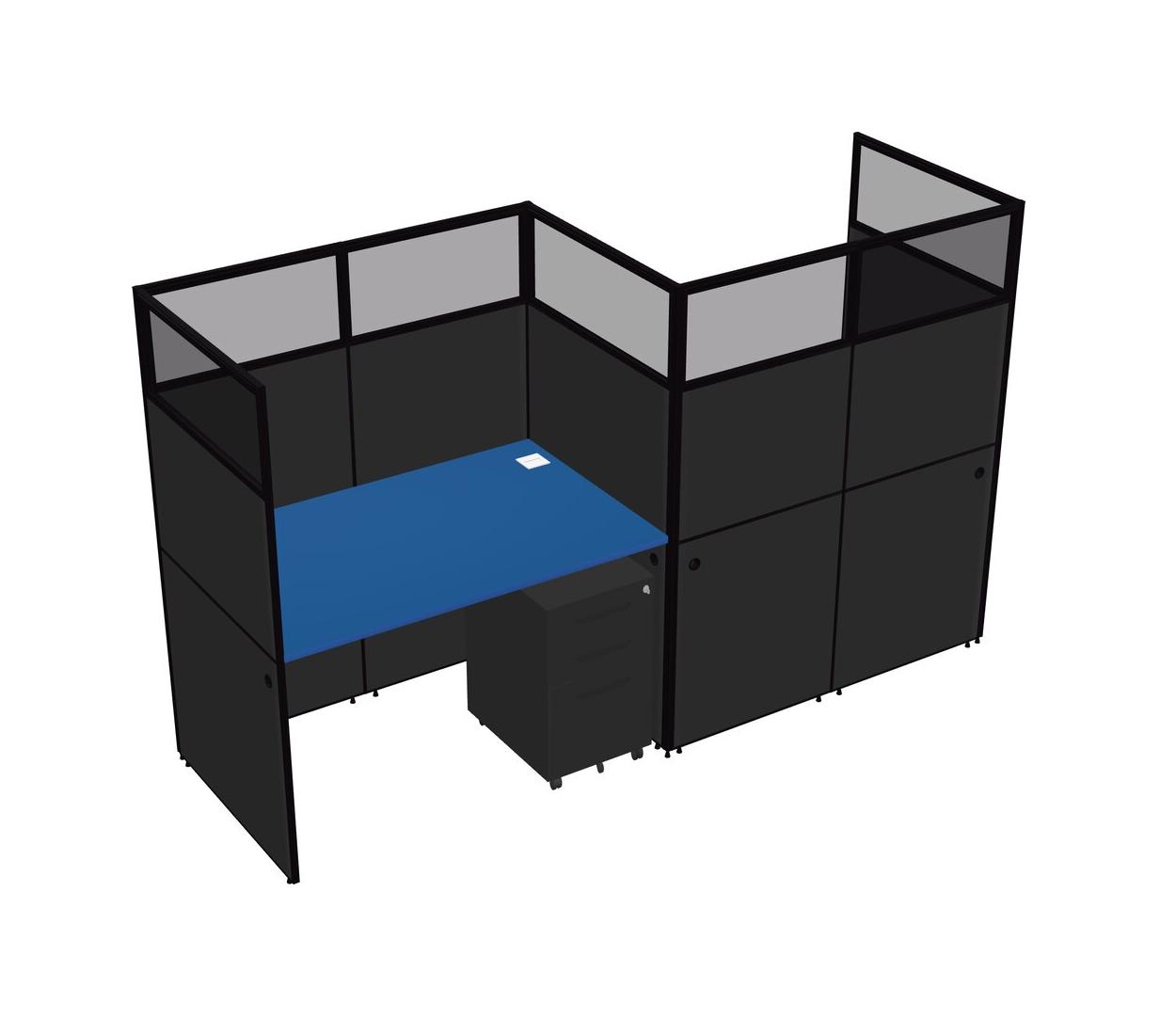 Prism Blue Rectangular Cubicle Workstations For 2 - Zigzag Formation + Black Metal Mobile Drawers
