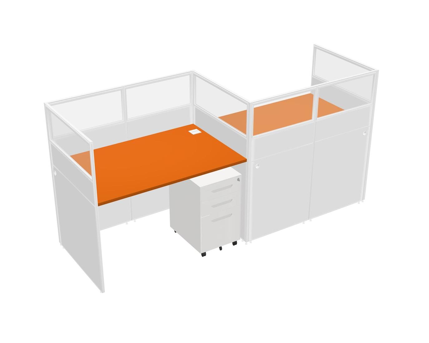 Orange Rectangular Cubicle Workstations For 2 - Zigzag Formation + White Metal Mobile Drawers