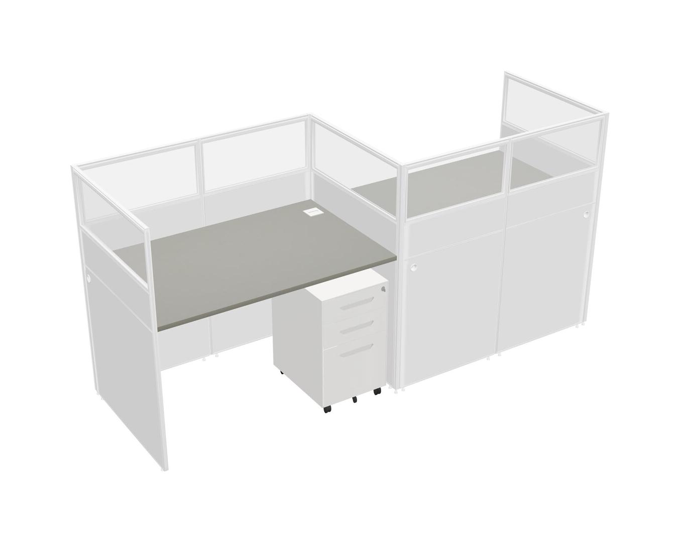 Grey Shadows Rectangular Cubicle Workstations For 2 - Zigzag Formation + White Metal Mobile Drawers