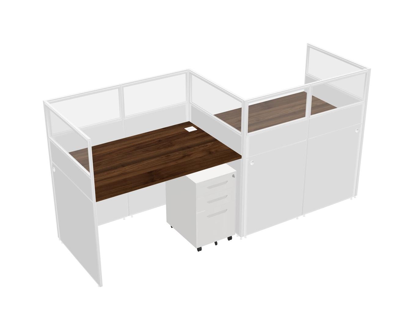 Columbia Walnut Rectangular Cubicle Workstations For 2 - Zigzag Formation + White Metal Mobile Drawers