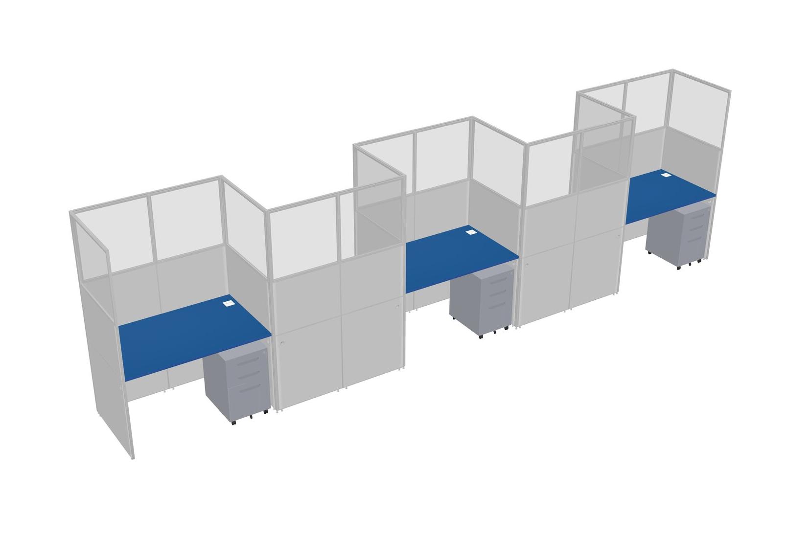 Prism Blue Rectangular Cubicle Workstations For 5 - Zigzag Formation + Grey Metal Mobile Drawers
