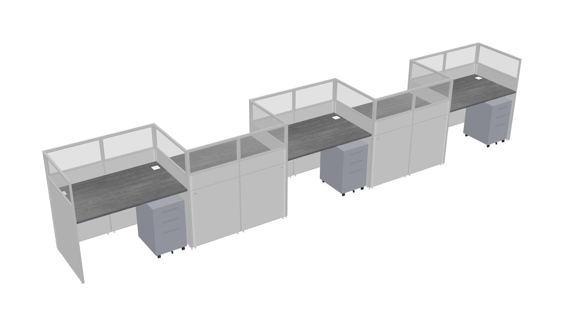 Grey Rectangular Cubicle Workstations For 5 - Zigzag Formation + Grey Metal Mobile Drawers