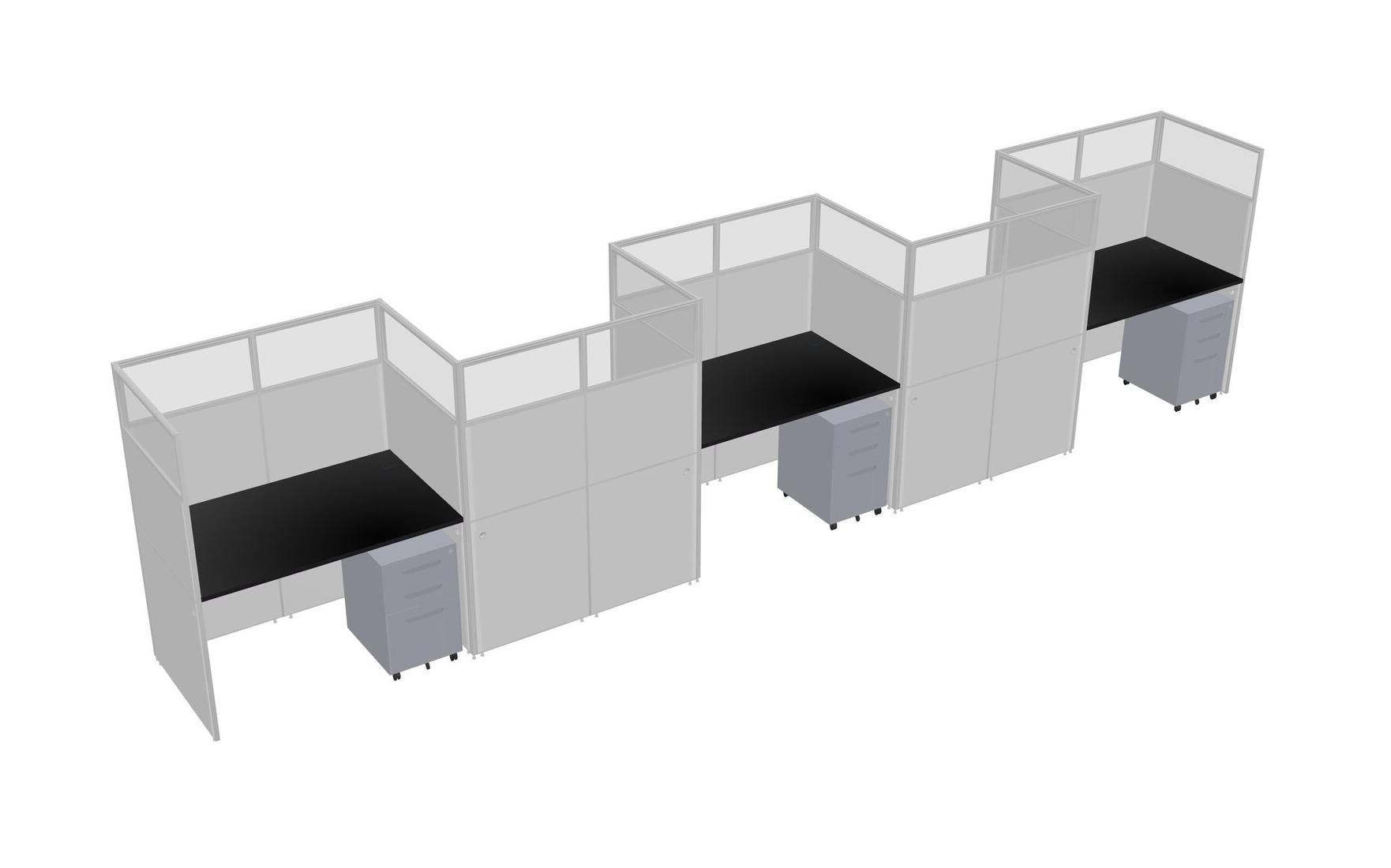 Black Rectangular Cubicle Workstations For 5 - Zigzag Formation + Grey Metal Mobile Drawers