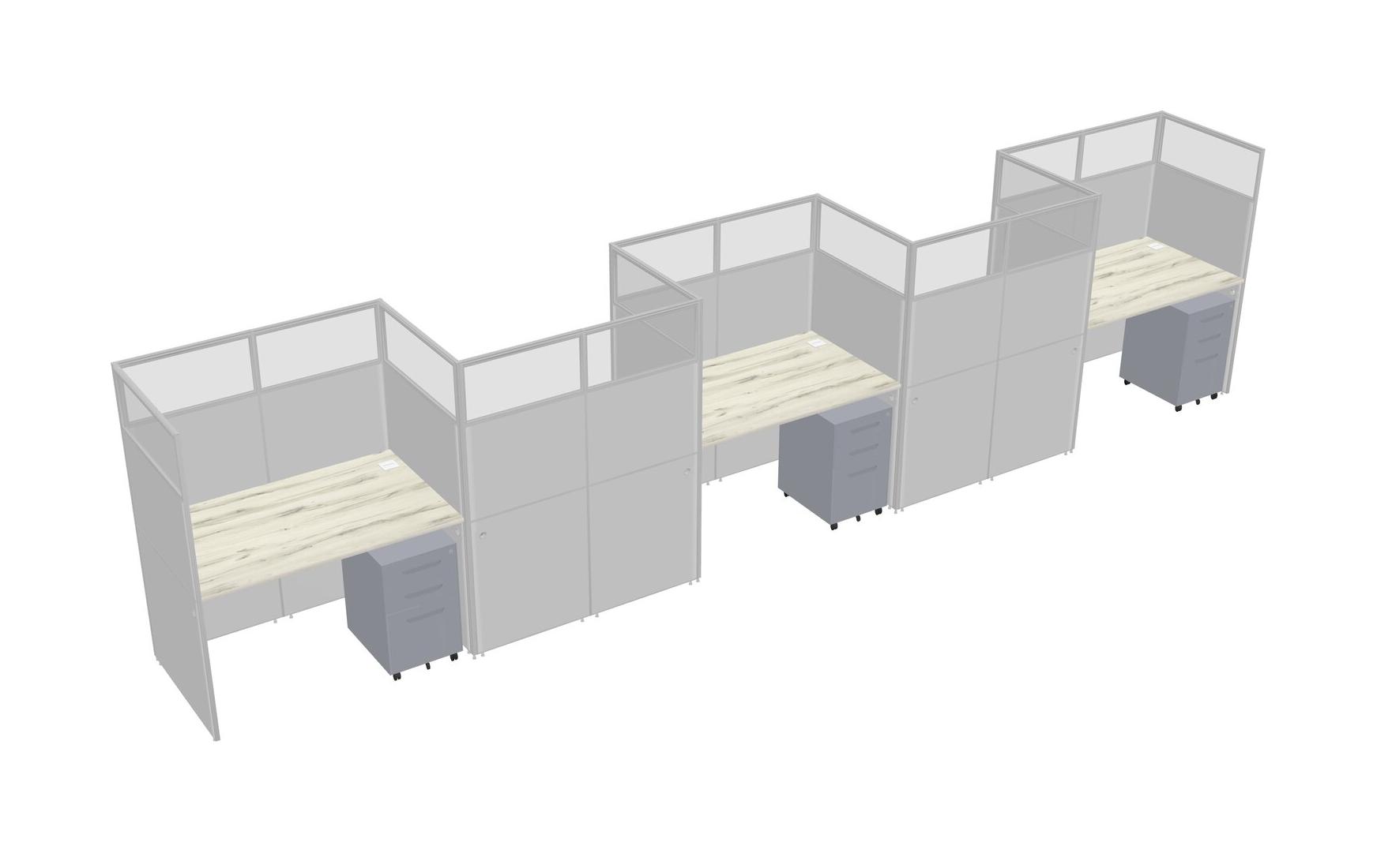 Heinne Holz Rectangular Cubicle Workstations For 5 - Zigzag Formation + Grey Metal Mobile Drawers