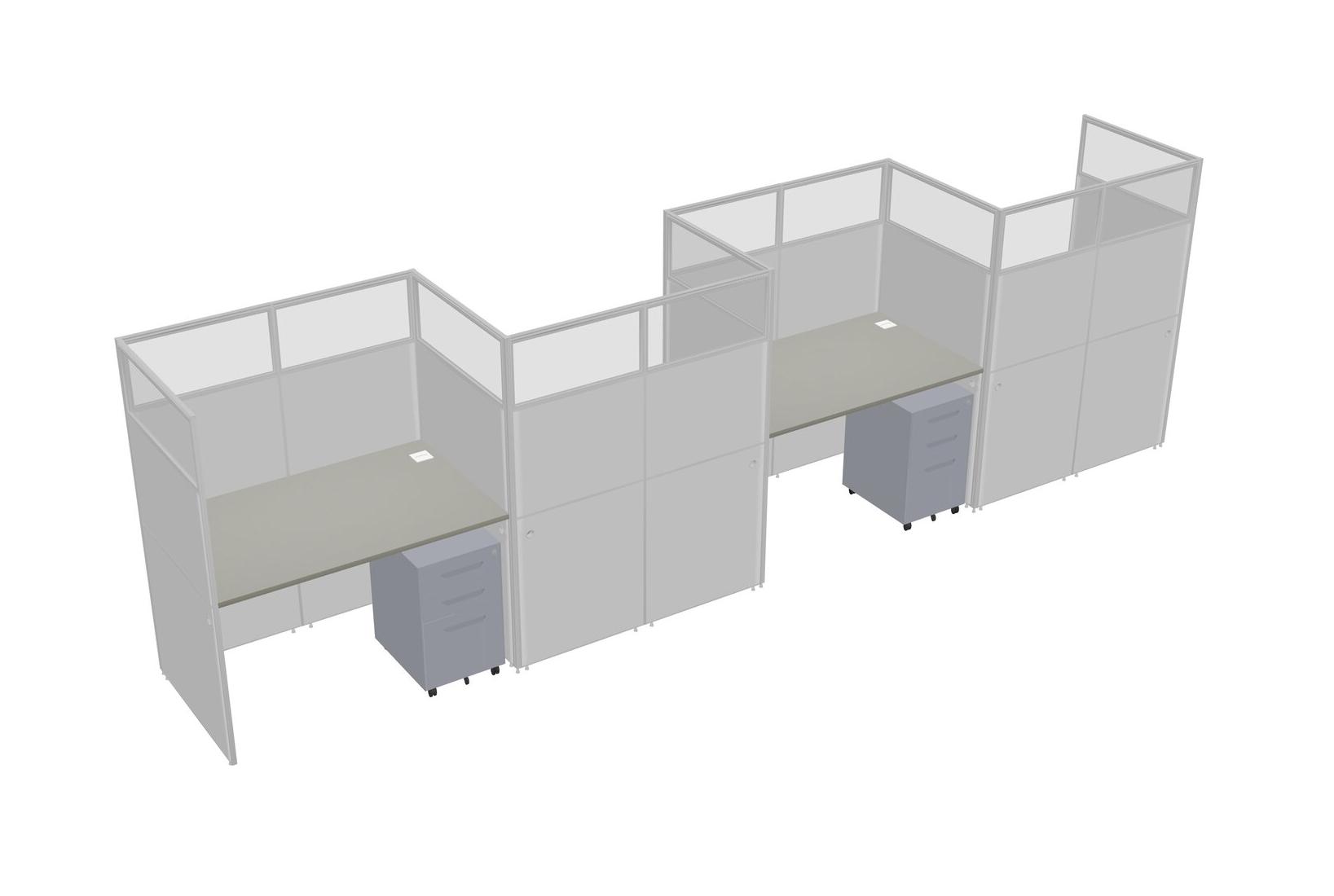 Grey Shadows Rectangular Cubicle Workstations For 4 - Zigzag Formation + Grey Metal Mobile Drawers