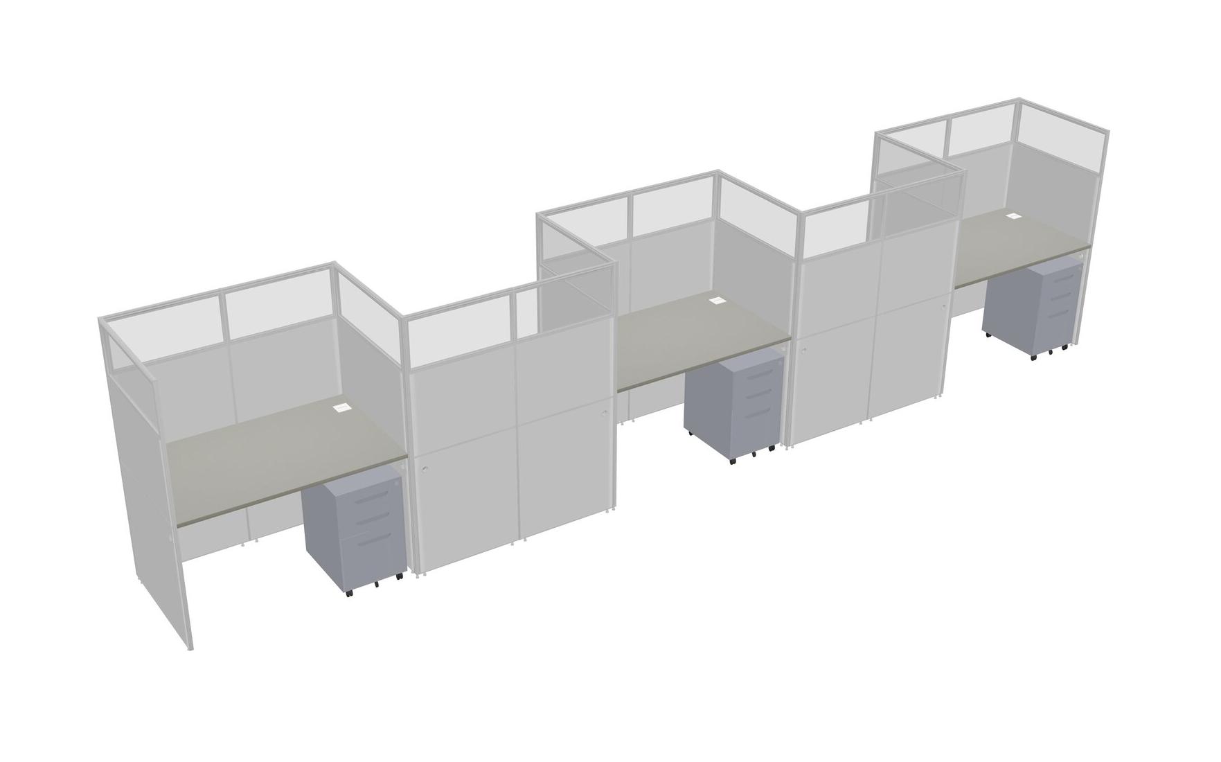 Grey Shadows Rectangular Cubicle Workstations For 5 - Zigzag Formation + Grey Metal Mobile Drawers